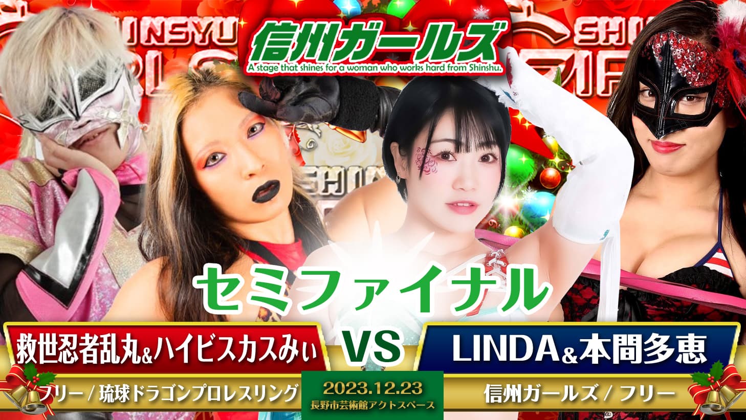 【出演】<プロレス>杏ちゃむ(信州ガールズ) 、LINDA(信州ガールズ)、ウナギ・サヤカ(フリー) 、雪妃真矢(フリー)、夏すみれ(フリー)、救世忍者乱丸(フリー)、ハイビスカスみぃ(琉球ドラゴンプロレスリング)、本間多恵(フリー)、SAKI、網倉理奈(12/3欠場発表)、櫻井裕子、小橋マリカ、真琴(フリー)、アイン(信州ガールズ)、雫有希(フリー)、もっきーさん(信州プロレス) ※ゲストは順次発表します